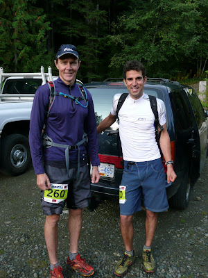 Now if you are still reading after that exciting clothing detour, I will get to the race. This year had a more competitive field than in 2007 with many of the same runners as I have talked about in recent races. The elite men's field included Jason Terauchi-Loutitt, Eric Findlay, and Sean Chester; all of whom are usually faster than me. Sean went out hard off the start line and I wondered if that was the last I would see of him. Within the first km or so, however, his pace decreased and Jason and Eric caught up to him with me trailing in 4th place. Soon, Jason was out of sight and that was the last I would see of him. I was was perhaps 10 seconds behind Sean when we turned away from Upper Thetis onto a single track trail (the map is found here for your reference). A couple of hundred meters in, I saw Sean slip around a corner and go down. Fortunately, he was uninjured and was back on his feet in no time. You can bet that I was careful around that corner!